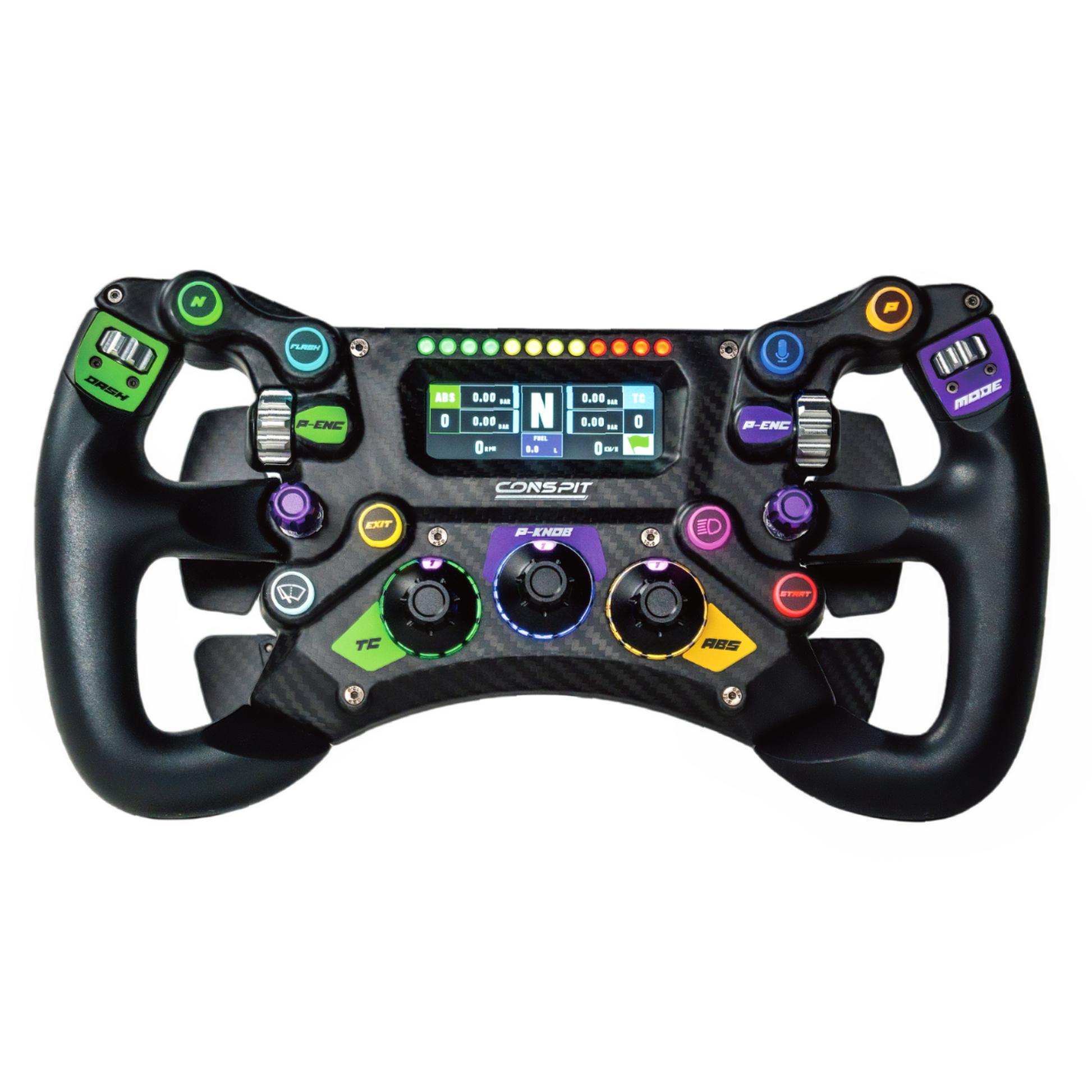 The Conspit 300 GT was developed for uncompromising GT SimRacing – with an extremely lightweight, highly rigid carbon-aluminum construction and a control architecture reminiscent of professional racing wheels from GT3 and endurance racing. With up to 110 input options, live telemetry, and customizable LED visualization, you'll be prepared for any racing situation and dominate your opponents.